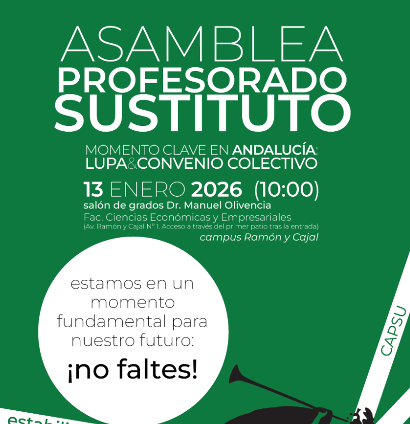 La Cordinadora Andaluza de Profesorado Sustituto Universitario (CAPSU) es un espacio en elque confluyen representantes… Read more »